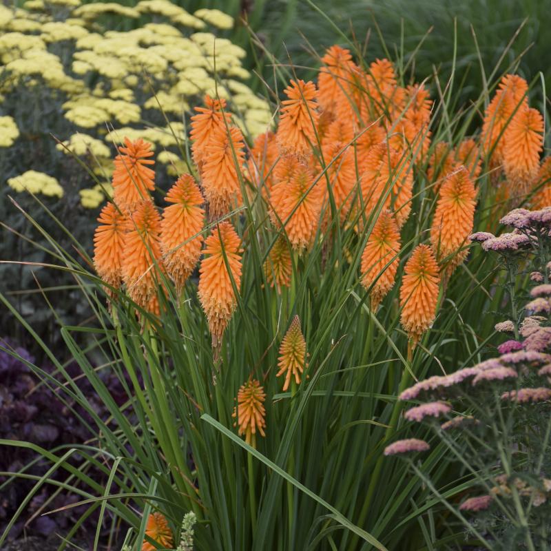 Commonly called Red Hot Poker or Torch Lily for their tall flower spikes. These South Africa natives offer tremendous garden value by combining grass-like foliage with tall flower scapes. An excellent perennial for the middle of the border.
