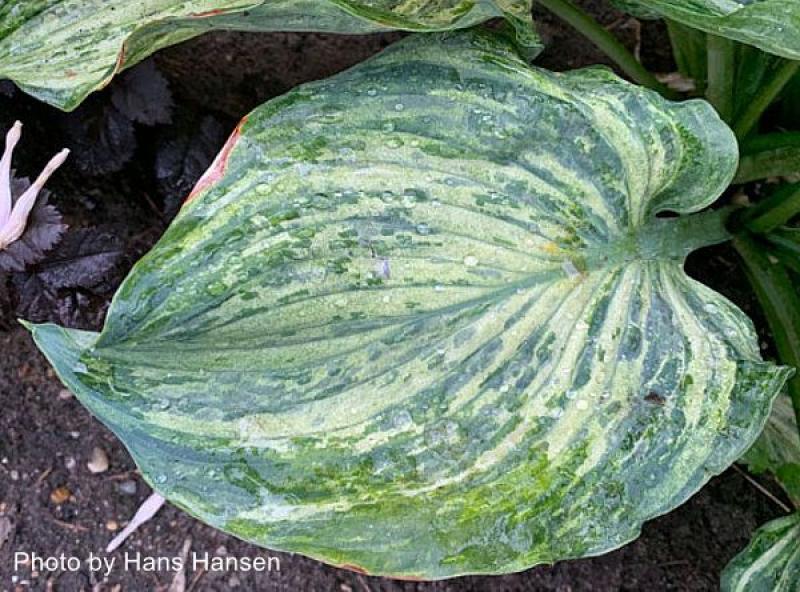 An incredible sport of 'Empress Wu'. Unusual flecking adorns each leaf. Leaves are the most white in spring, with flecks growing in size and number as the season progresses. Near white flowers appear in early summer. Much more compact than 'Empress Wu', growing 21" tall and 42" wide.