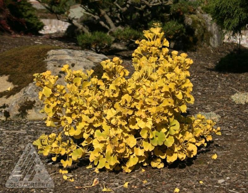 This interesting dwarf ginkgo forms a flat, rounded but irregular shrub. The fan shaped leaves are brilliant yellow in the fall. Best grown in full sun. It grows slowly, eventually reaching 3-5' tall and wide. Hardy to Zone 4.