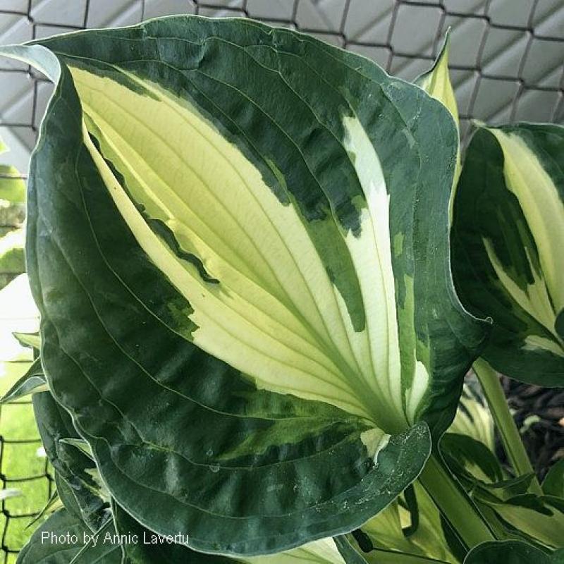 A showy and exciting hosta with streaky, creamy white centers and dark green margins. The thick leaves emerge with bright creamy centers which darken to chartreuse later in summer. Grows 18" tall and 35" wide. Lavender flowers in mid summer.
