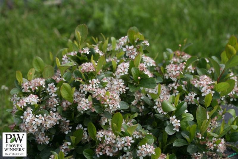Cute as a button and tough as nails, this low-growing shrub is perfect for mass planting as a ground cover or edging plant. The glossy green foliage is covered with lots of white spring flowers. Black fruit in late summer provides food for birds. Intense red fall foliage color is a fantastic bonus. This shrub grows into a tidy mound 1-2' tall and wide and is hardy to Zone 3.