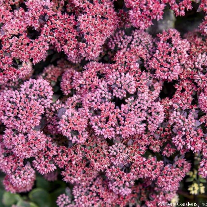 (Stonecrop) dark purple leaves form a domed habit; mauve buds bloom into red flowers in late summer; 26 inches; full sun; Zone 3