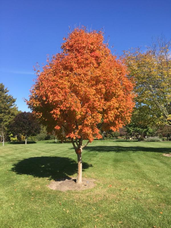 This Paperbark Maple is a rare species, native to Manchuria and Korea. It has beautiful, cinnamon-colored, exfoliating bark. But better yet is its outstanding , intense orange to red fall color. A smallish tree, it grows 20-30' tall and 20-25' wide. Hardy to Zone 4.