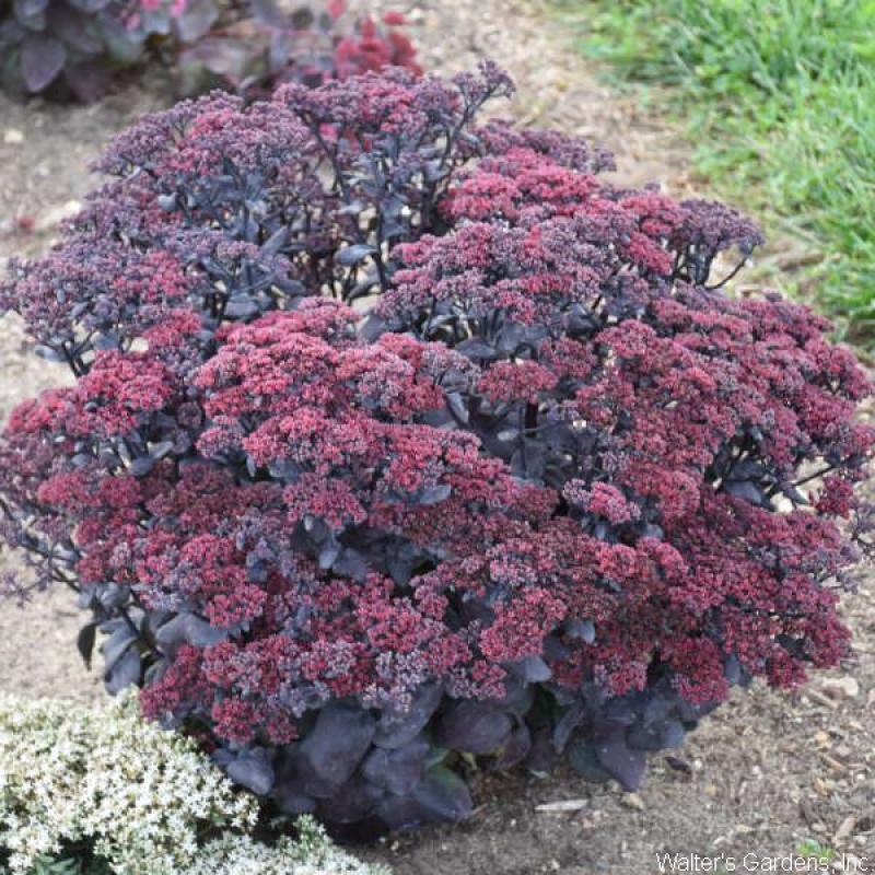 (Stonecrop) near-black, deep purple foliage; clusters of red flowers open in fall; upright sedum; 20 inches; full sun; Zone 3