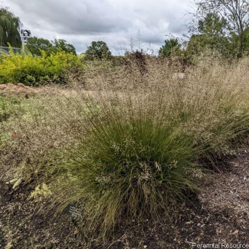 (Prairie Dropseed) shorter than the species, with green foliage topped by wispy, airy and aromatic tan flower panicles; heat and drought tolerant; 36-40 inches; full sun; Zone 3