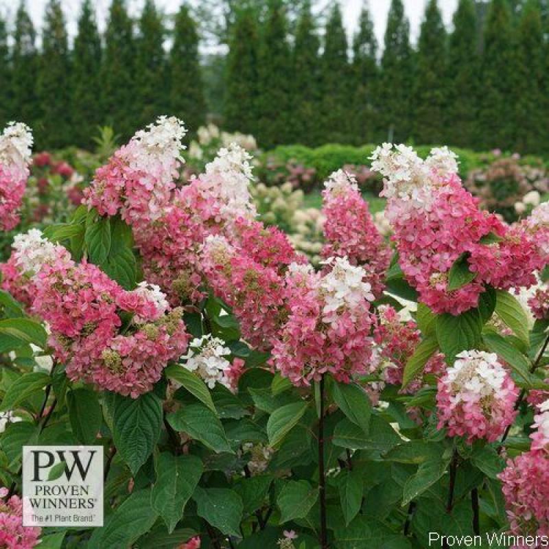 Truly massive blooms on a big, hearty habit set Pinky Winky Prime panicle hydrangea apart from other recent introductions. While other plants are going smaller, Proven Winners has gone big with Pinky Winky Prime hydrangea. At 6 to 9 ft tall and wide, it’s the perfect size for use as a specimen or a hedge, and with its incredible color show it’ll be the talk of the town. The large flowers are two-toned pink and white, and they bloom on new wood. Pinky Winky Prime® prefers morning sun and afternoon shade. That being said, if watered well throughout the dry season, grouped plantings of panicle hydrangeas in full sun can be spectacular! This variety is hardy to beat. Zone 3.