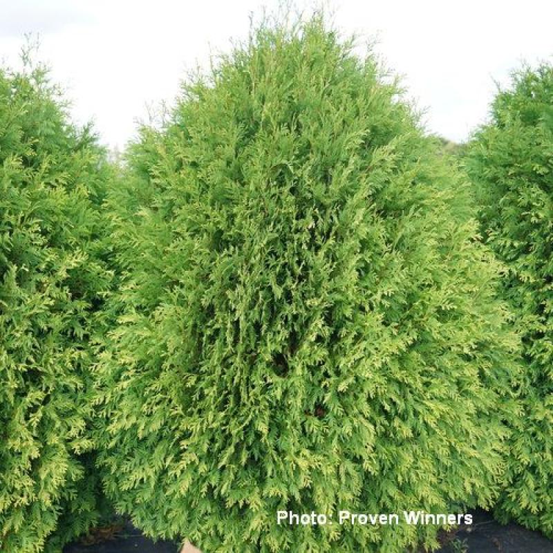 What makes this bright green arborvitae so interesting is its attractive tear drop shape, which it maintains naturally. Makes a great hedge or specimen plant, growing 10-18' tall and 6-8' wide. Likes full sun to mostly sun/part shade. Very hardy to Zone 3.