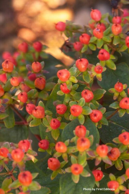 This hypericum will be a star in your garden! Yellow blossoms cover the shrub in spring, followed by clusters of red berries in the fall. This plant will make wonderful additions to floral arrangements as well as gardens. 'Red Star' is drought tolerant as well as deer resistant, and its compact habit make it great for any full sun space. Plant a group of shrubs near each other to create an even more spectacular display. 'Red Star' Hypericum grows 3' tall and 2.5' wide in full sun and is hardy to Zone 6.