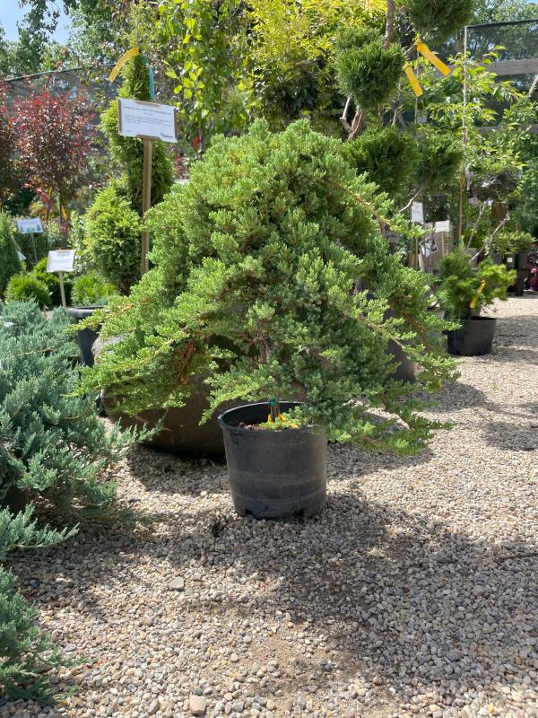 This Japanese Garden Juniper is a cute, tough bluish juniper with fine texture on a 24" standard. Best in full sun. With the standard, it grows 3' tall and can get 6' wide. Hardy to Zone 4.