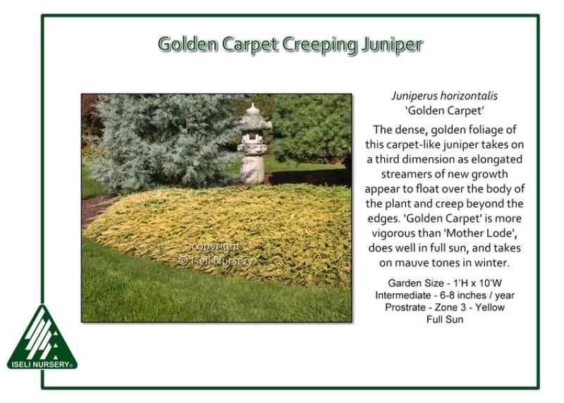 Ideal for both residential and commercial landscapes, this versatile juniper is a standout choice for adding year-round interest, texture, and durability. Create captivating pathways, accentuate garden edges, or revitalize challenging spaces with the Golden Carpet Juniper's exquisite and enduring golden beauty.