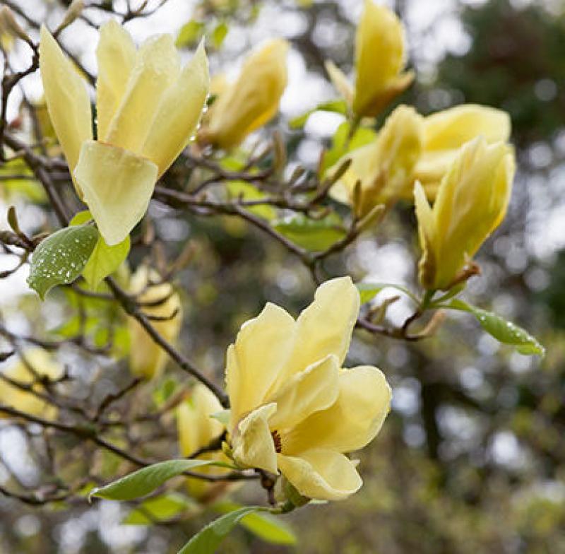 'Butterflies' Magnolia bursts onto the scene in early spring with creamy, yellow blossoms that dance like delicate butterflies against large, glossy green leaves, painting a picturesque portrait of beauty and grace. Each flower petal seems to flutter in the breeze, evoking the delicate charm of butterflies in flight and infusing the landscape with a sense of wonder and joy. Compact yet prolific, the Butterflies Magnolia adorns gardens with its stunning floral spectacle, making it a perfect choice for smaller yards or as a standout feature in larger landscapes. Beyond its visual allure, this magnolia boasts resilience and low maintenance, promising years of graceful blossoms. Embrace the ephemeral beauty of spring with the Butterflies Magnolia, a timeless treasure that brings joy and elegance to every garden it graces. Grows 15-20' tall and 10-15' wide in full sun/part shade and is hardy to Zone 5.