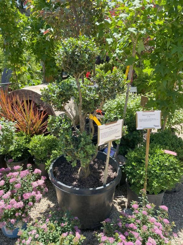 The Buxus 'Rotundifolia,' meticulously crafted into a poodled form through skilled trimming, presents an exquisite botanical marvel. This meticulously pruned specimen showcases a playful yet refined aesthetic, where the boxwood's vibrant green leaves form perfectly rounded contours. Each meticulously sculpted curve and precisely trimmed edge demonstrates the mastery of topiary artistry, creating a striking visual contrast against its surroundings. The 'Rotundifolia' cultivar, with its inherent hardiness and compact growth, serves as an ideal candidate for such artistic manipulation. Its foliage, composed of small, oval-shaped leaves densely arranged along supple branches, perfectly lends itself to this intricate shaping. This living sculpture, with its tailored appearance, not only adds a touch of whimsy and sophistication to any landscape but also stands as a testament to the gardener's dedication and skill. The poodled Buxus 'Rotundifolia' becomes a focal point, inviting admiration for its precision, elegance, and the artistry involved in its creation. Grows in Sun/Shade and is hardy to Zone 5. Size varies with culture.