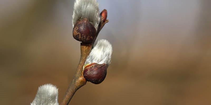 In early spring, the delicate catkins of the Pussy Willow blossom early compared to other flowering plants. These catkins bloom prominently on bare branches before leaves emerge, serving as a crucial pollen source for native bees that emerge early in the season.
