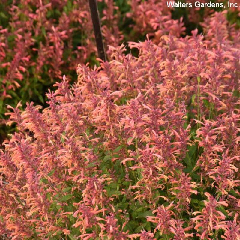 'Guava Lava' begins to bloom in the heat of the summer and continues for many weeks. Coral orange flowers are held on mauve pink calyxes, which remain attractive even after the flower has finished blooming. Agastache are a favorite of pollinators, attracting hummingbirds, butterflies and honeybees. Well-adapted to thrive in dry soils and is right at home in rock gardens xeric plantings.