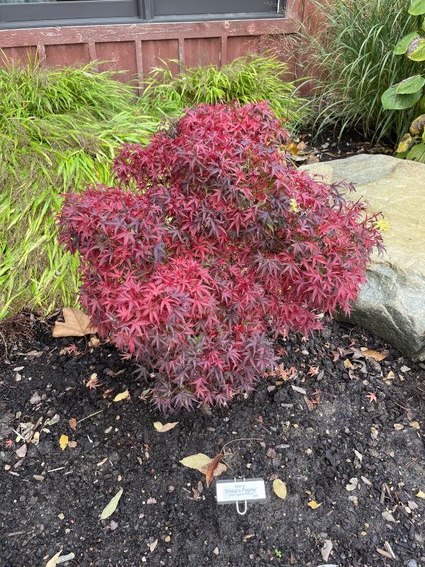 This naturally compact seedling selection is an outstanding miniature maple. The dense, rounded shrub is covered with small, green, palmate leaves with coarse margins from spring through summer; in fall, dramatic red leaves give way to a great branch structure for winter. Very versatile, 'Sharp's Pygmy' thrives in the container, the courtyard, patio bed, or for bonsai culture. Grows 4' tall and 4' wide in 10 years and will slowly get larger with age. Best in afternoon shade. Hardy to Zone 5.