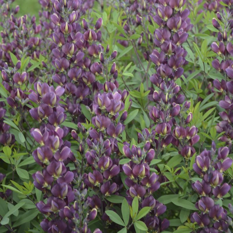 A color break for False Indigo! The shade of purple is redder than the typical purple Baptisia. Dark wine purple flowers are produced over very dark blue-green foliage. When it is in bloom, it is a stunning display of color. Use in place of a shrub in the landscape.