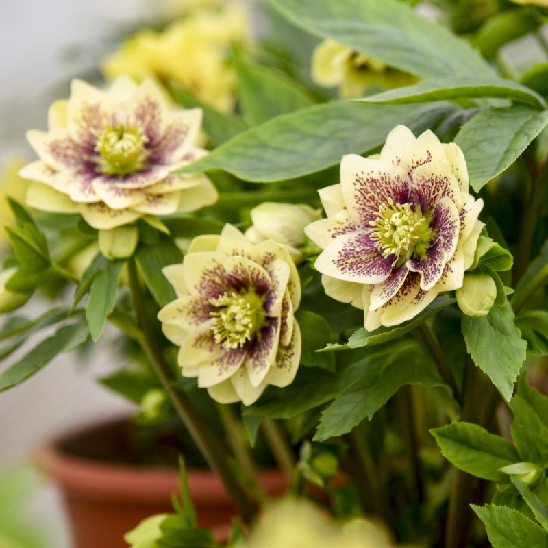 Walters Gardens hybridizer Hans Hansen has a passion for hellebores. In his breeding work, he selects for plants with notable vigor, showy floral displays with large numbers of blossoms per plant, and rich flower colors. The WEDDING PARTY® series showcases his double flowered selections, available in numerous, beautiful color shades.