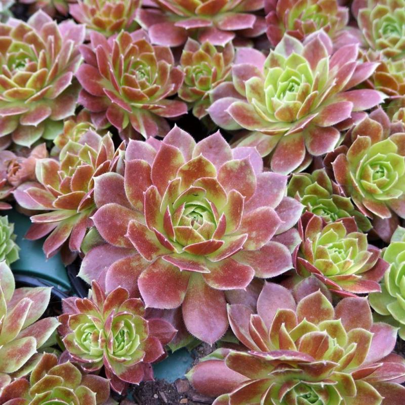 Sempervivum 'Rocknoll Rosette' is a hardy, evergreen succulent known for its beautifully symmetrical, compact rosettes of fleshy green leaves with deep red tips. Growing 4-6 inches tall and spreading 6-8 inches wide, this low-maintenance, drought tolerant plant thrives in full sun and well-drained soil. It produces offsets that gradually form a dense mat, making it ideal for rock gardens, containers, and ground cover. In summer, mature rosettes may send up tall flower stalks with small pink blooms.