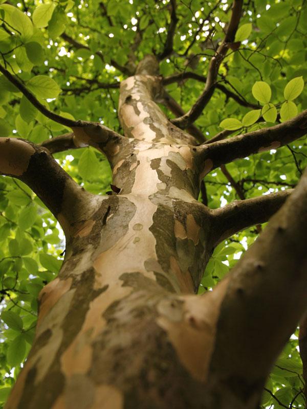 Camellia-like white flowers appear on this medium sized tree in July and August. Kaleidoscopic fall color includes red, orange and purple tones. Beautiful cream and tan patches are revealed as its trunk exfoliates with age. Pyramidal to oval in shape, medium to dark green leaves. Height: 30'. Spread: 20'. Hardy to Zone 5.