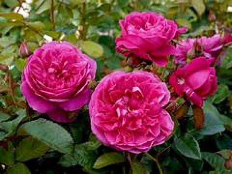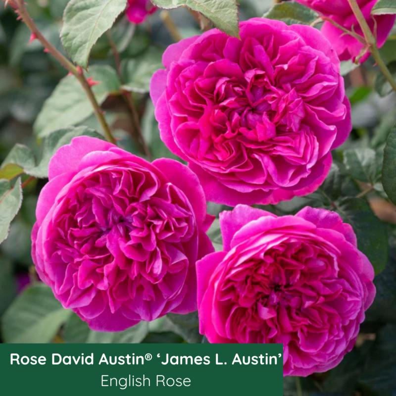 This David AustinĀ® English rose bears large, many petalled, deep pink rosettes, each with a button eye. There is a light-medium strength fruity fragrance. It forms a neat and tidy shrub with a bushy, upright habit. Named for the son of David Austin Senior and brother of David Austin Junior. Grows 4' tall and 3' wide. Hardy to Zone 5.