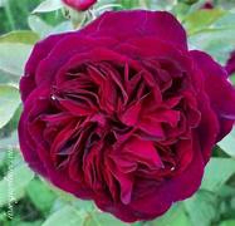 This David AustinĀ® English rose bears very deep, velvety crimson blooms, with lighter colored outer petals. They are deeply cupped at first, becoming shallowly cupped with time. There is a strong Old Rose fragrance with fruity notes of blackberry, blueberry and damson notes. The bushy, spreading growth forms a broad shrub; the young red-bronze leaves later turn mid-green. Grows 3' tall and 3.5' wide. Hardy to Zone 5.