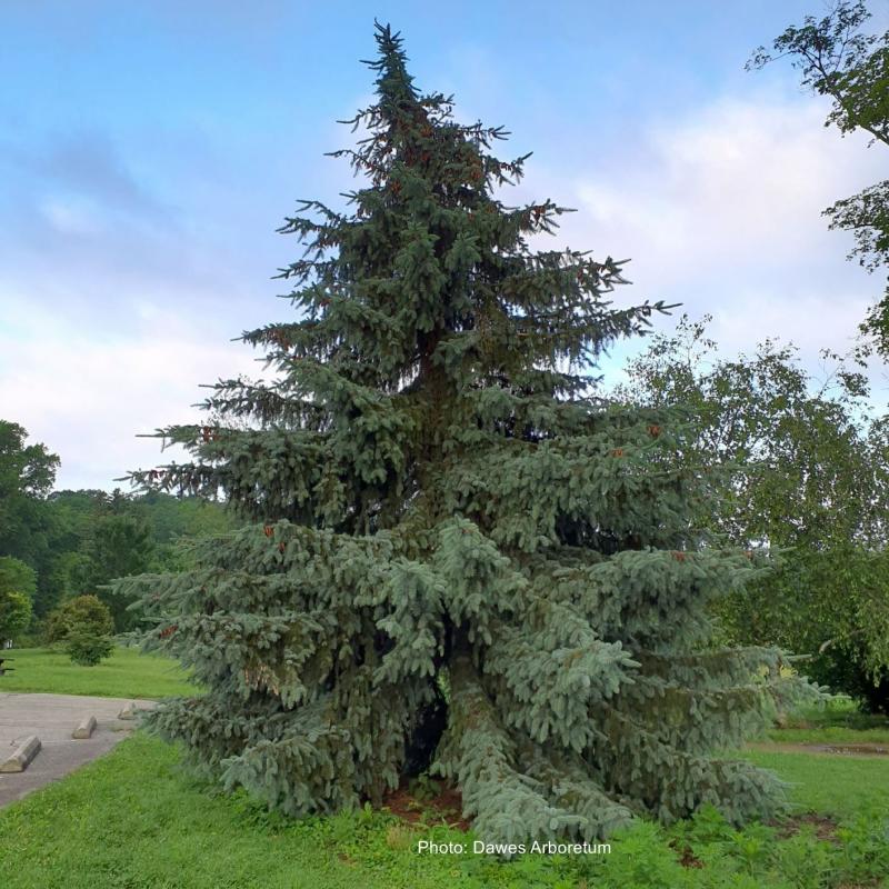 This hybrid cross of pungens and omorika has prickly pungens style needles with characteristic omorika blue-green needles. Sweeping branches and fairly fast growth form a specimen sized tree that gets better and better with age. Selected by Allen Troemner, University of Wisconsin Forestry Department. Plant in full sun. Garden size is 25' tall and 15' wide. Hardy to Zone 4.