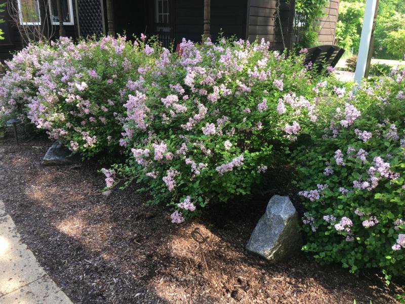 The dwarf Korean lilac becomes a profuse bloomer at an early age. Purple buds open to very fragrant lilac-lavender flowers in late May and early June. The foliage is somewhat red-tinged in the fall. The specimens planted around Rich's front porch have been there since 1978. We trim them back after flowering to shape and control height. And every eight years or so, we cut them back hard (with loppers), after which there is not a leaf on them. They flush back out in a couple of weeks and bloom perfectly the next spring. Untrimmed, it will grow 4-5' tall with a spread of 4-6'. Hardy to Zone 3.