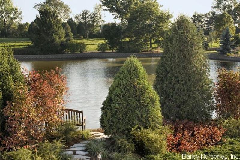 This arborvitae is a denser, dwarf form of 'Techny', forming a compact pyramidal outline. It holds its rich, green color well in winter. Grow in full sun to part shade. Garden size is 6' tall and 3' wide. Hardy to Zone 3.