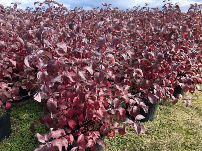 This compact form of red twigged dogwood is from Minnesota, so you know it's hardy. White flowers in spring are followed by white fruit in late summer. The dark green foliage turns a nice purple-red in fall. And then the beautiful red stems put on a great show in winter. Cut out a few of the oldest stems each spring to promote straight red stems. Disease resistant. Plant in full sun to part shade. Grows 5-6' tall and wide, and is hardy to Zone 2.