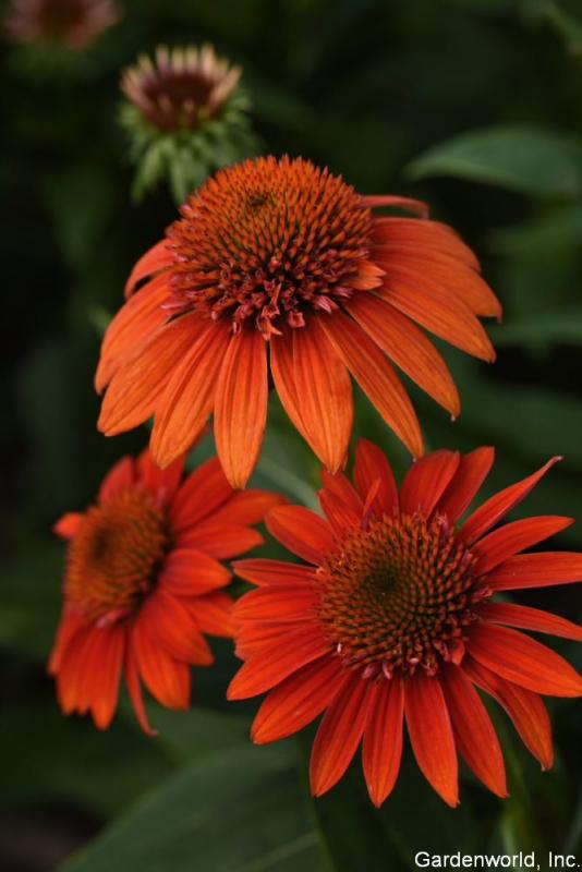 (Coneflower) sturdy, compact plants are covered in bright, non-fading orange blooms from late spring through late summer; 18-20 inches; full sun; Zone 4