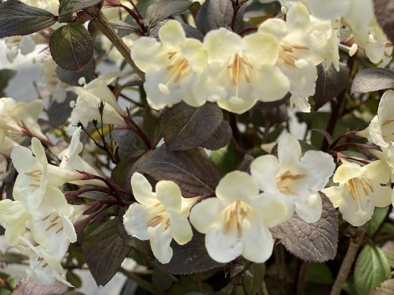Add a splash of bold elegance to your landscape with Weigela Wine & Spirits — new to our garden center this year! This eye-catching shrub features deep, dark burgundy foliage that sets off its crisp white flowers in dramatic contrast. Blooming from late spring into summer, it’s a true standout in any garden.