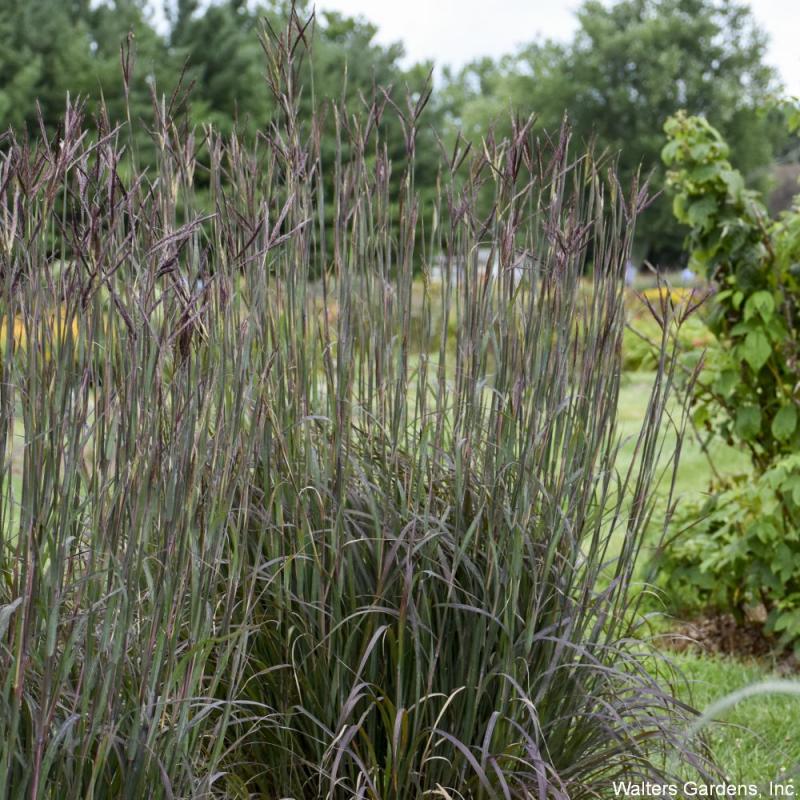 (Big Bluestem) a native grass with dark green foliage that turns dark purple in fall; excellent as a screen or statement in the sunny garden; 4-5 feet tall with a 2 foot spread; full sun; Zone 4