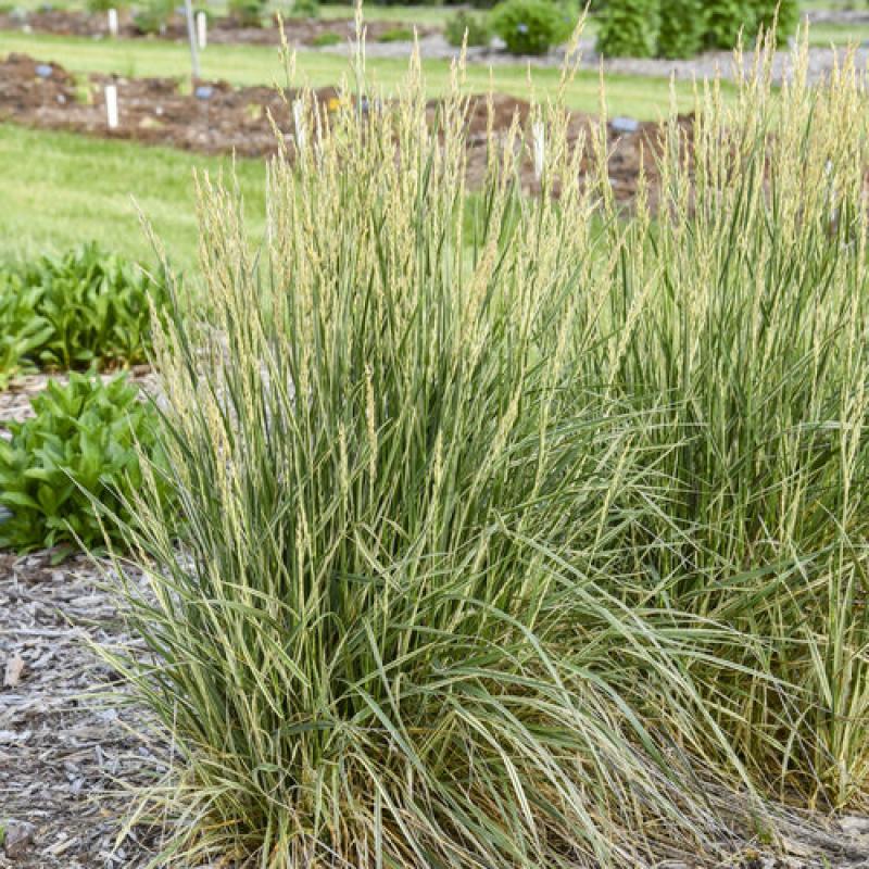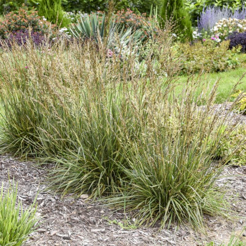 Festuca ‘Perfect Edging’ is a taller variety of fescue with fine, blue-green foliage and creamy margins. The variegation is most pronounced when it emerges in the early spring. The foliage forms a neat, rounded mound that grows 14-18" tall and 18-24" wide, while the flower scapes carrying light tan-colored seed heads reach 30-34" tall. The flowers appear in early summer and remain upright through the end of the season. Festuca arundinacea is excellent for soil conservation and erosion control. Festuca requires plenty of sun, but wouldn't complain about a little afternoon shade to protect from the summer heat.