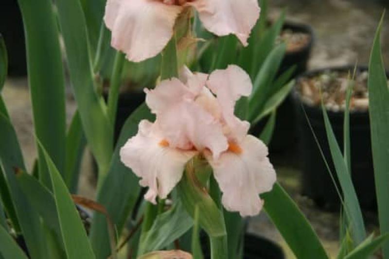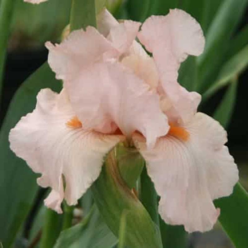 Iris germanica ‘Pink Attraction’ is a re-blooming bearded iris that features soft, ruffled pink flowers orange beards in late spring and often again in late summer. The blooms are sweetly fragrant and rise above upright, sword-like green foliage, creating a classic, elegant look in sunny garden spaces.