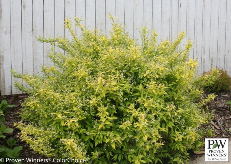 Add season long color to the garden with this easy growing, bright beauty. Numerous pearl-like buds burst into attractive star-shaped flowers in spring. When the flowers have faded, this plant continues to shine with its bright yellow foliage. Prune immediately after flowering to maintain a compact mound. This deer resistant shrub is small enough to fit into perennial borders or near the front of mixed shrub borders. It handles full sun, but may look best in a bit of afternoon shade, especially during dry summer heat. Chardonnay PearlsĀ® grows 2-3' tall and wide and is hardy to Zone 5.