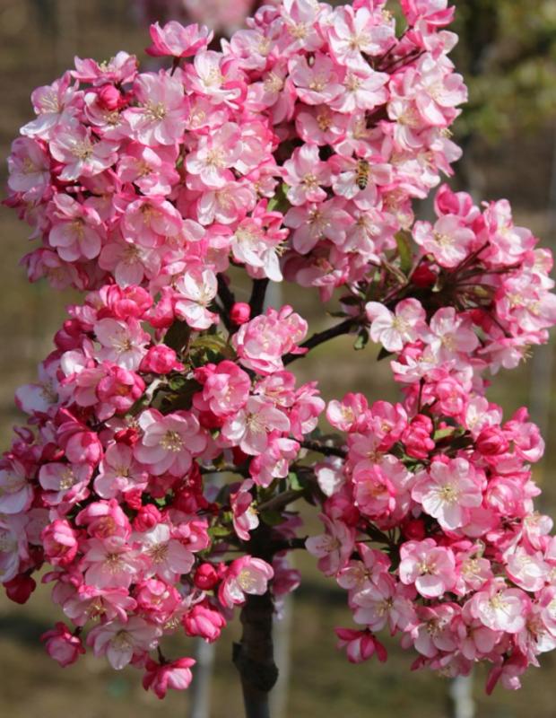 Malus Coralburst® crabapple is a compact, round, slow-growing tree. It takes about 10 years for this tree to reach its mature height and width. Coral pink buds open to double rose-pink flowers in spring. A bountiful fall crop of orange-red fruit is enjoyed wildlife all winter long. Its compact size fits will into any landscape. Disease resistant.