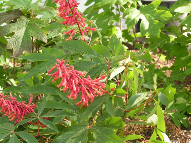 Red Buckeye is a striking small native tree or large shrub best known for its brilliant red spring flowers and strong wildlife value. In mid to late spring, upright clusters of tubular red blooms appear at branch tips and are especially attractive to hummingbirds. Large, palmate green leaves give the plant a bold, tropical look through summer before turning brown-yellow in the fall. Smooth gray bark and a compact form make it well suited to woodland edges, understory plantings, and mixed borders. Adaptable to sun or part shade, Red Buckeye performs best in moist, well-drained soils and benefits from siting where there is some protection and consistent soil moisture.