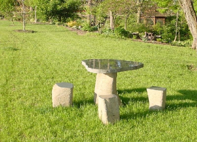 Rolling Stone Table w/ 4 Stools Table:30"H, 40-48"D, Stools:17"H