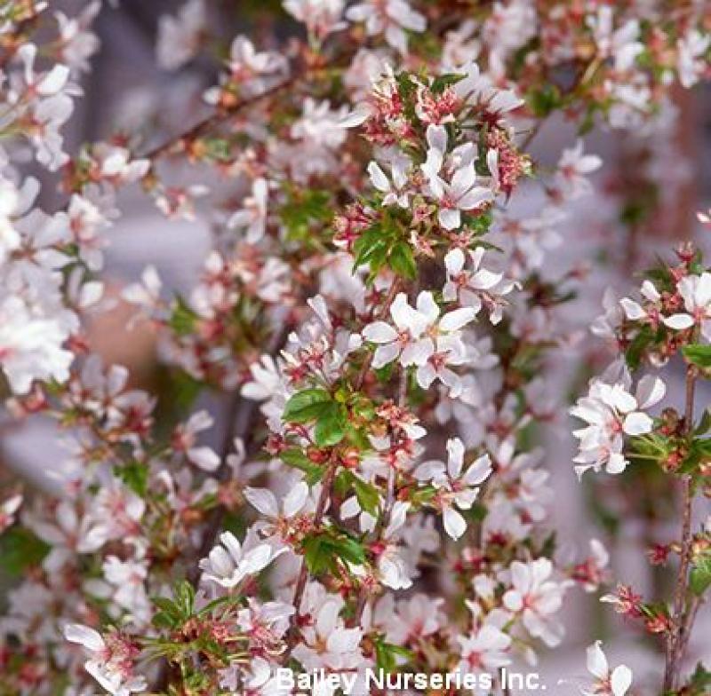 The actual botanical name of this variety is Prunus x 'Snowfazam', but is often sold using the trade name Snow Fountains®.