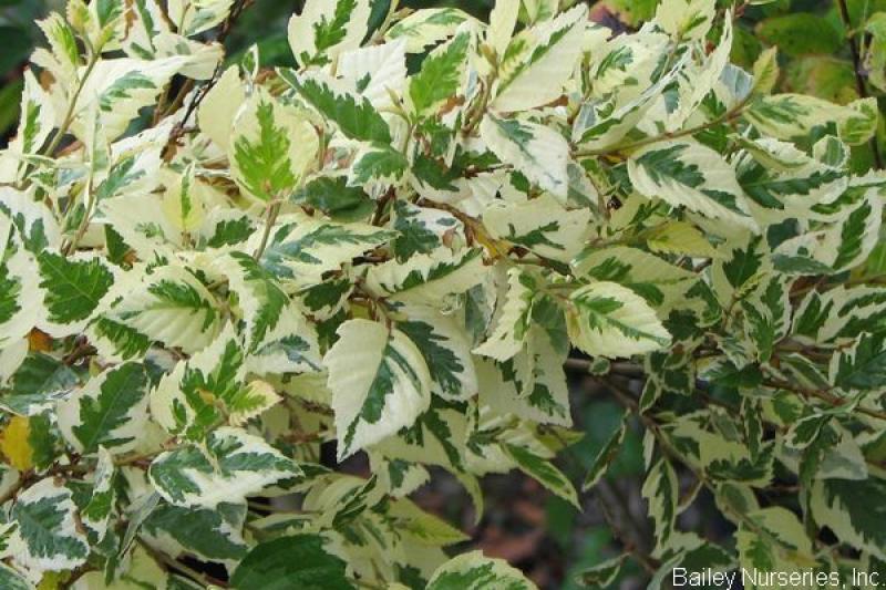 Brightly variegated foliage graces this diminutive birch. Leaves are green with creamy white to yellow margins. Wonderful exfoliating bark is light tan. Grows to 10' tall and 8' wide. As with most variegated plants, it probably will appreciate some afternoon shade. Hardy to Zone 5.