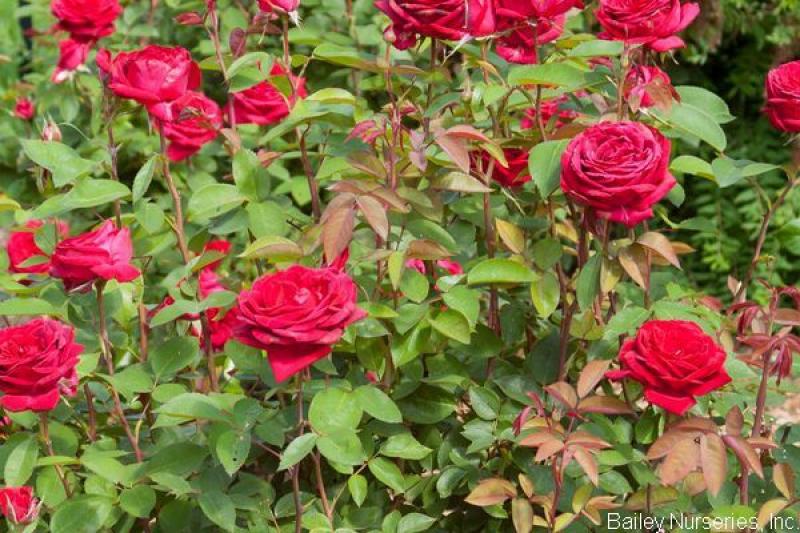 An Easy Elegance® shrub rose with velvety, dark red blooms that resemble a hybrid tea rose. Makes a great cut flower. Grows with an evenly rounded habit, 3-4' tall and 2-3' wide. Hardy to Zone 4.