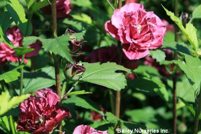Deep red flower buds open to large, red, pompom flowers that bloom for eight weeks in summer. Sterile seeds prevent seedlings from popping up in the garden. It's a vigorous grower into an upright, vase-shaped shrub 5-8' tall and 4-7' wide. Good in full sun to part shade and hardy to Zone 5.