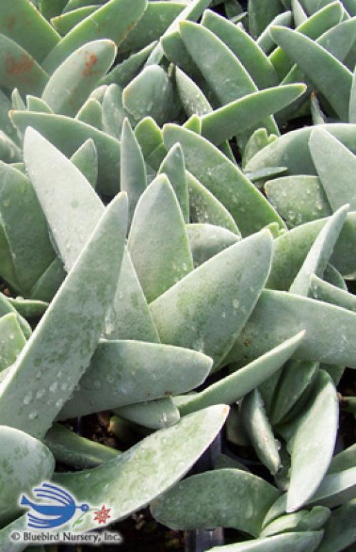 (Propeller plant, Sickle plant) oblong, sickle-shaped, gray-green leaves that are obliquely alternate; bright red flowers; 12-18 inches; full sun; Zone 9