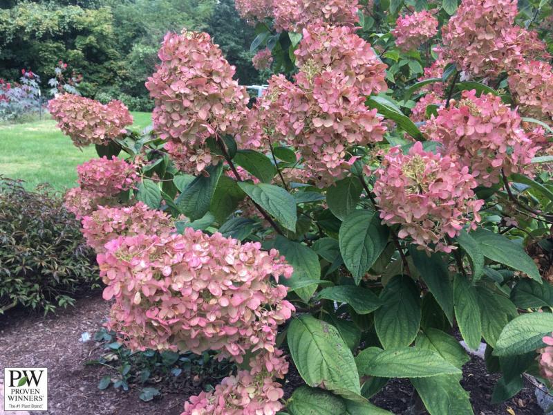 A true show-off in the summer garden, Fire Light® has become the standard bearer for white-turning-pink panicle hydrangeas. The flowers turn from creamy white to pink and then to rich pomegranate-pink, holding their color until frost, especially if planted in afternoon shade. The plant grows 6-8' tall and wide, but can be kept somewhat shorter by pruning back by a third in early spring. Hardy to Zone 3.