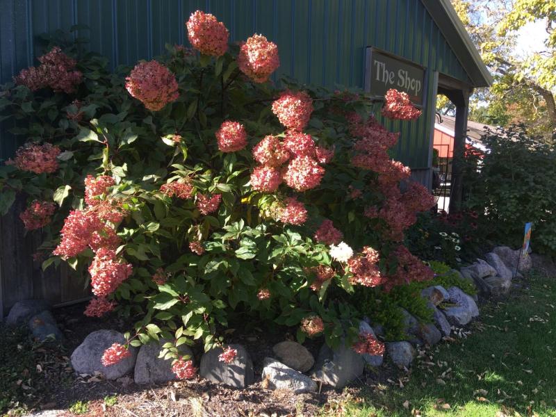 Huge creamy white flowers turn pink, then red, and hold their color well while new blooms keep the multi-color show going into fall. Red stems add winter interest. As with most Hydrangeas, morning sun and afternoon shade is best. That being said, if watered well throughout the dry season, grouped plantings of panicle hydrangeas in full sun can be spectacular! This popular variety grows 6-7' tall and 5-6' wide. Prune back by a third in early spring to control size, if desired. Hardy to Zone 3.