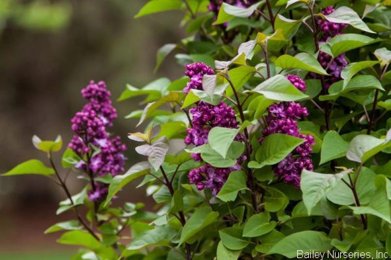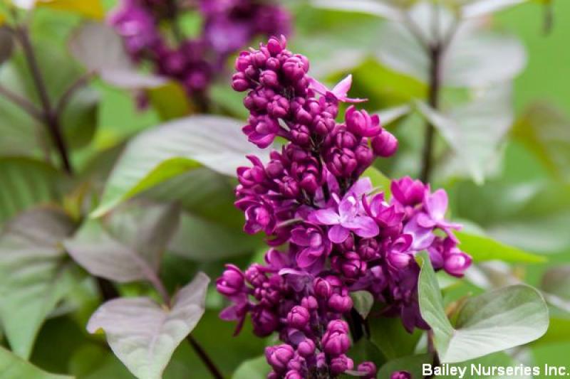 With shiny violet new leaves, deep purple stems, raspberry-purple buds and fragrant violet flowers, this hybrid lilac is aptly named. Its upright, dense habit makes for a good hedge as well as a welcome addition to foundation plantings. Remarkably mildew free. It grows 6-8' tall with a spread of 5-7', and is hardy to Zone 3.