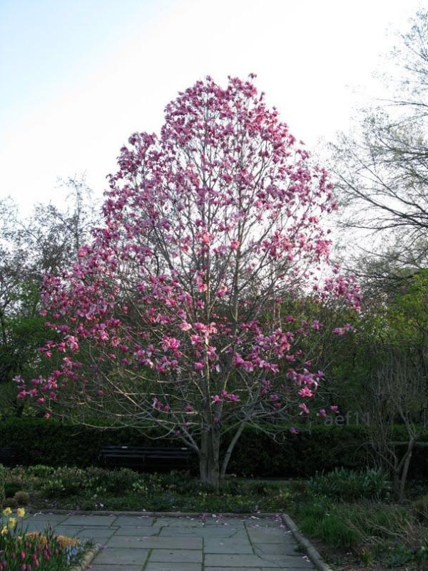 'Galaxy' produces an abundance of fragrant, reddish-purple flowers later in spring than other magnolias, thereby avoiding most late spring frosts. It has a pyramidal habit with strong branching structure. Performs best in full sun, growing 30-35' tall and 20' wide. Hardy to Zone 5.
