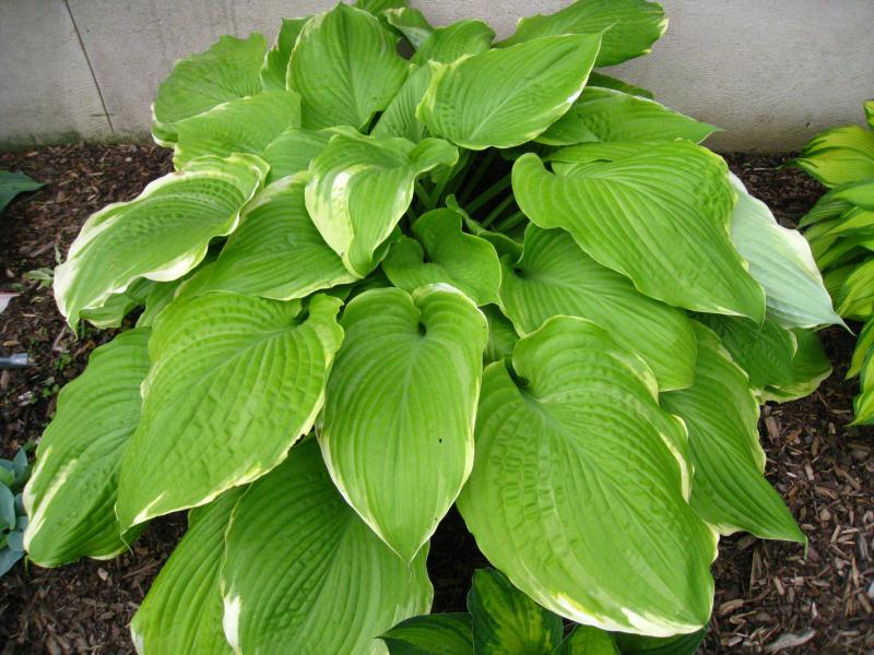 A Fred Smith hybrid exclusive to our nursery, this is a 'Sum and Substance' cross, forming a large clump of chartreuse, white-margined foliage. The huge leaves have good substance and nice corrugation. We're not quite sure how big this one will get, but it will get at least 28" tall and 60" wide. Lavender flowers in summer.