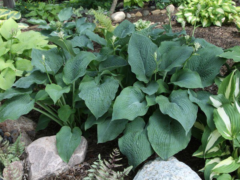 An oldie but goodie that forms a fine specimen clump. The large, gray-green leaves have a bluish cast in spring, and are incredibly corrugated and slightly rippled on the margins. Its very good substance indicates there is probably some H. sieboldiana in its breeding. Grows 25" tall and up to 60" wide. Nice white flowers in early summer.