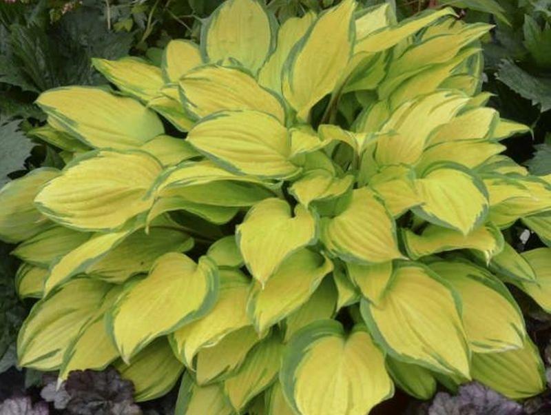 2022 Hosta of the Year! 'Island Breeze' is a sport of 'Paradise Island' with better variegation and leaf substance. The wide, green margins contrast with bright yellow centers in spring. The centers may become more chartreuse in shade, but can get even lighter yellow if provided some sun. The leaves are held on showy red petioles. Grows 12" tall and 18" wide. Purplish lavender flowers in summer.